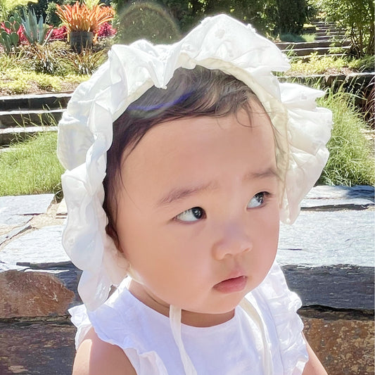 Baby girls will always be known for their bows and bonnets. The Camille Beaufort Bonnet is not only sweet in design but also a practical way to shade your babies skin from the harmful rays of the sun. Though we're in the 21st century, this vintage piece will always lead in style.